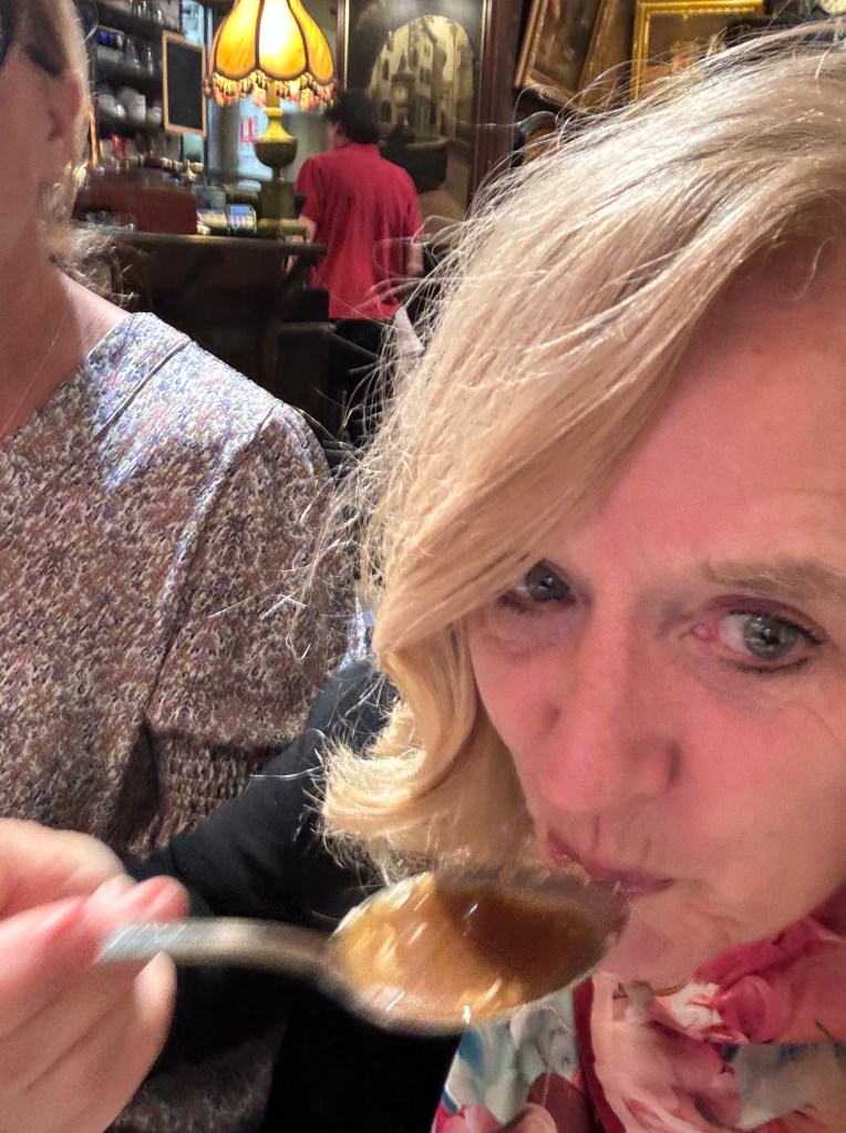 Marianne and I got drenched. The best thing we could do now was to stop off at a cozy pub to get dry and warm up.