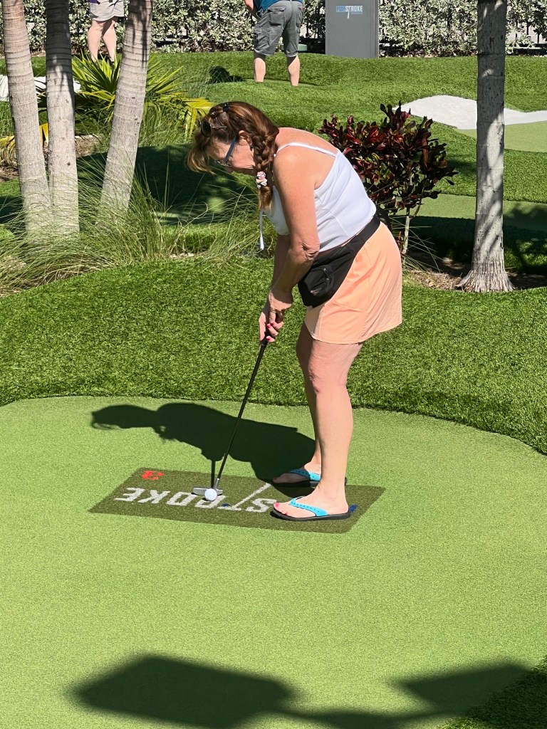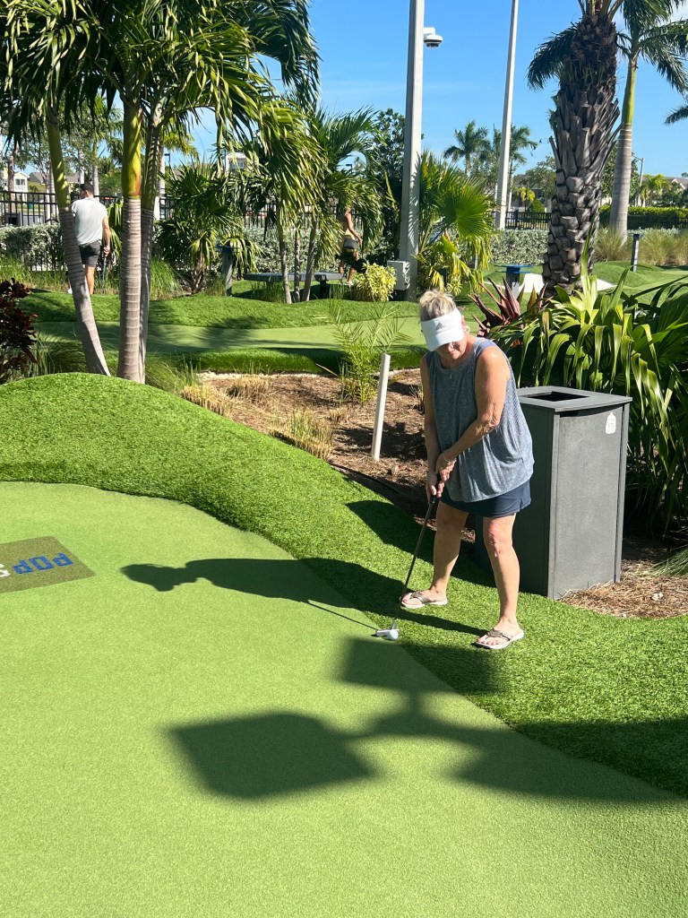 The next day we drove to Fort Meyer’s for a unique golf experience. Jeanne said we would be ok even though Trish and I don’t play golf. PopStroke is an outdoor golf featuring two 18-hole Tiger Woods designed putting course. Tiger Woods named it after his Dad that he called Pop.