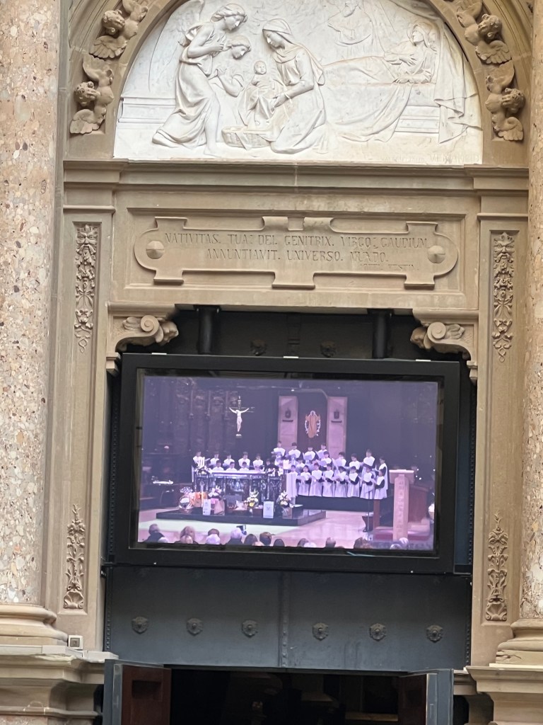 It was hard to hear the boys choir on the screen, but we were blessed to be able to go into the church and receive communion.