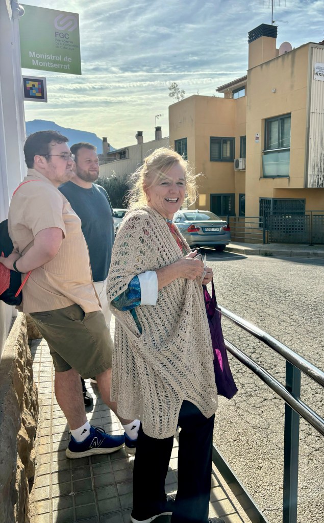 Marianne and I thought we were so prepared for this adventure. We purchased a train ticket to Monserrat in Barcelona which included transportation up the mountain. We disembarked at the last Monserrat station with a crowd of people only to find out that we purchased the train ticket that included a funicular (gondola) ride up the mountain to the monastery. To our dismay, we found out the stop we needed to get off was the stop before the one we were at. Unfortunately the train going back in that direction was in 1 hour. Our goal was to hear the boys choir at 12 noon. If we waited for that train, we would miss the boys choir. It would be a 10 minute taxi ride, but there was no taxis in sight. I heard 2 American boys from Oregon complaining that they were in the same situation as us. The boys were calling for a taxi. We asked if we could join them. They pleasantly agreed.