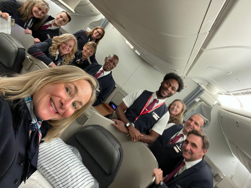 This is our fun crew to London. We were on the 777-300 which holds 304 passengers and every seat was full. It was a 6 and 1/2 hour flight there. Without fail, we were all given our 2 hour rest breaks. Lots of drinking was had by the Brits, but only made these passengers nicer. A much needed fact for all of you to know is that American Airlines gives all alcohol free on International flights no matter where you sit.
