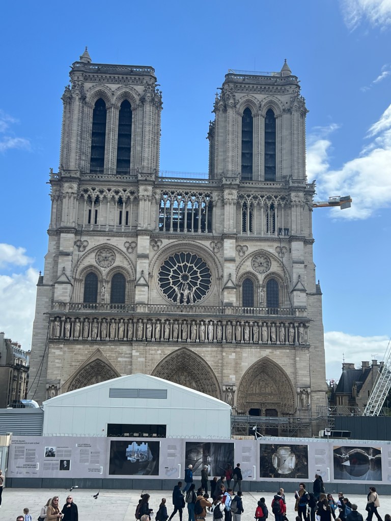 This is the side view of the devastation which was caused by the fire and all the work that has to be done to make it as special as it once was. I read this on the wall, “As scaffolding rose inside the cathedral, hope began to grow for the coming rebirth.” The Cathedral should be completed by the end of 2024.