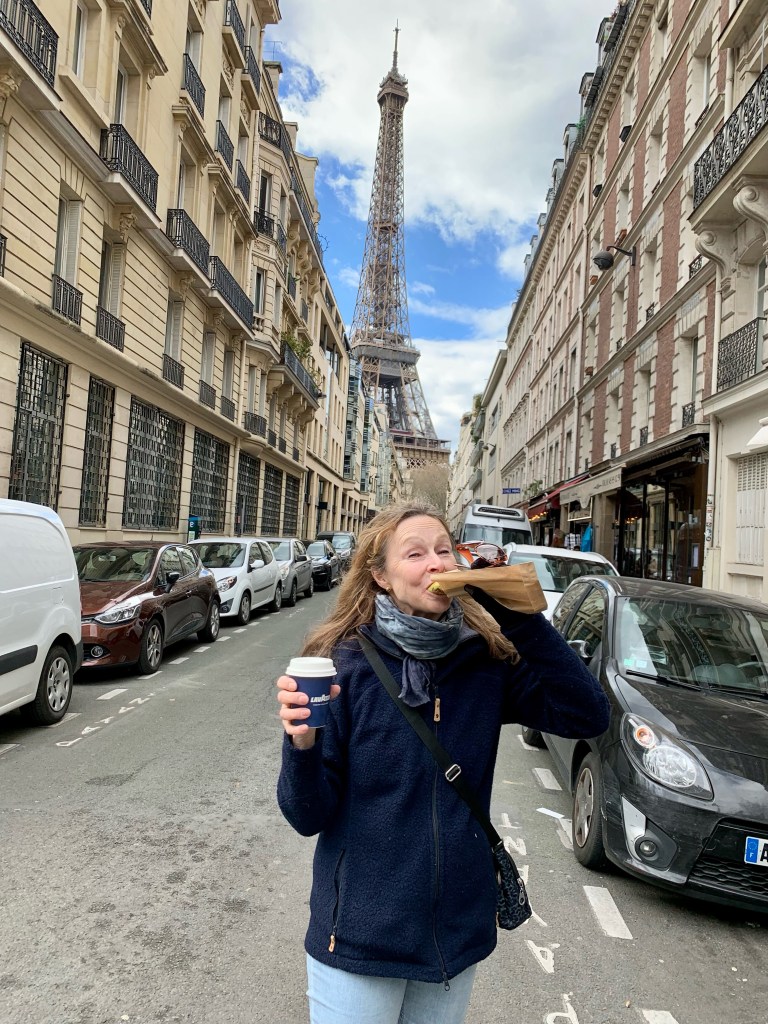 Before getting to the Eiffel Tower, we had to stop for a delicious croissant. On the street next to the boulangerie, where we purchased our croissants, the young ones where taking photos like they were models. After all the girls left, I said to Marianne, “We got this!”