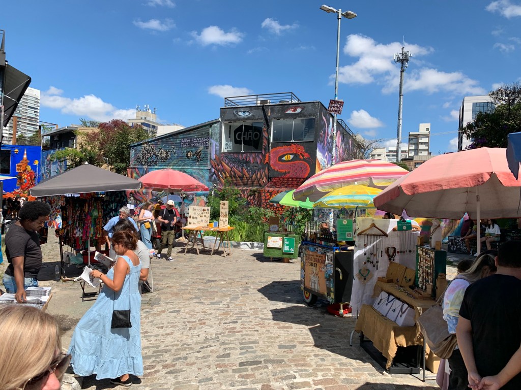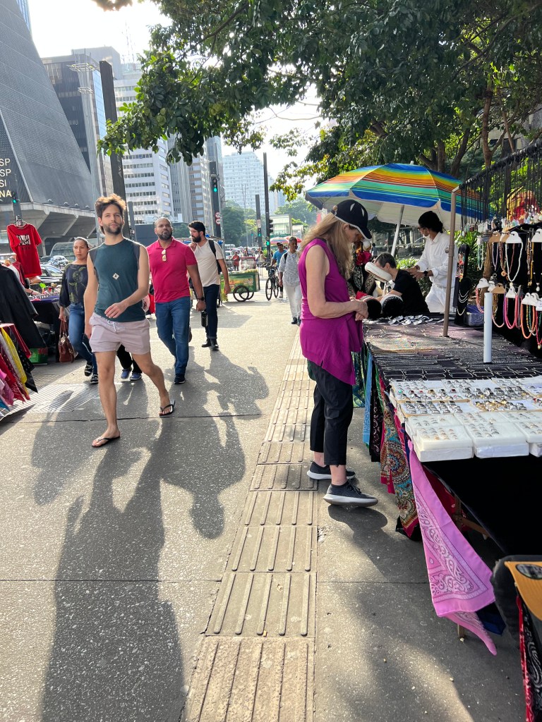 We could not believe Paulista Avenue was only 1.7 miles away from our hotel. Everyone told us to go over the bridge and keep walking straight up a hill and that’s what we did. To much of our amazement, Paulista Avenue felt similar to 5th Avenue in New York. Paulista Avenue is one of Brazil’s most famous streets, it has several museums, restaurants and lots of shopping. Paulista Avenue is closed to passage of cars on Sunday. It becomes full of vendors and lots of entertainment. We were there on Saturday and it was still fun.