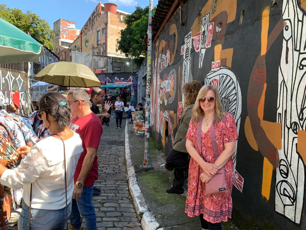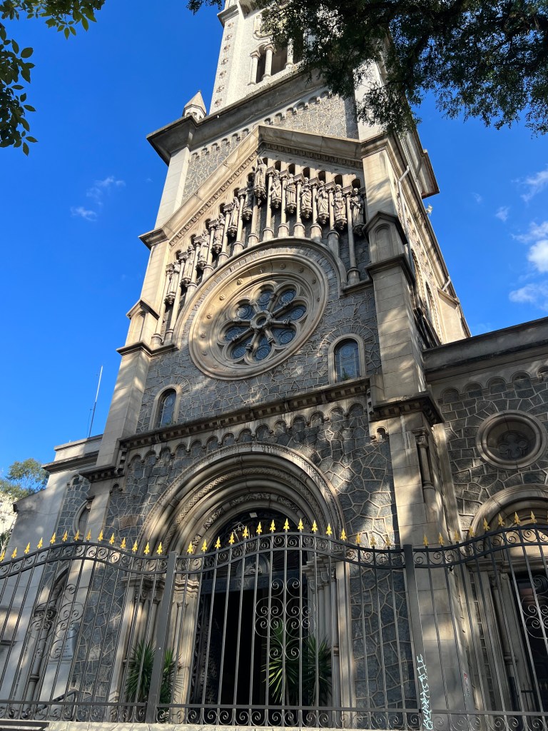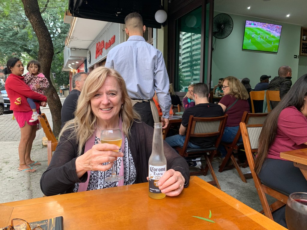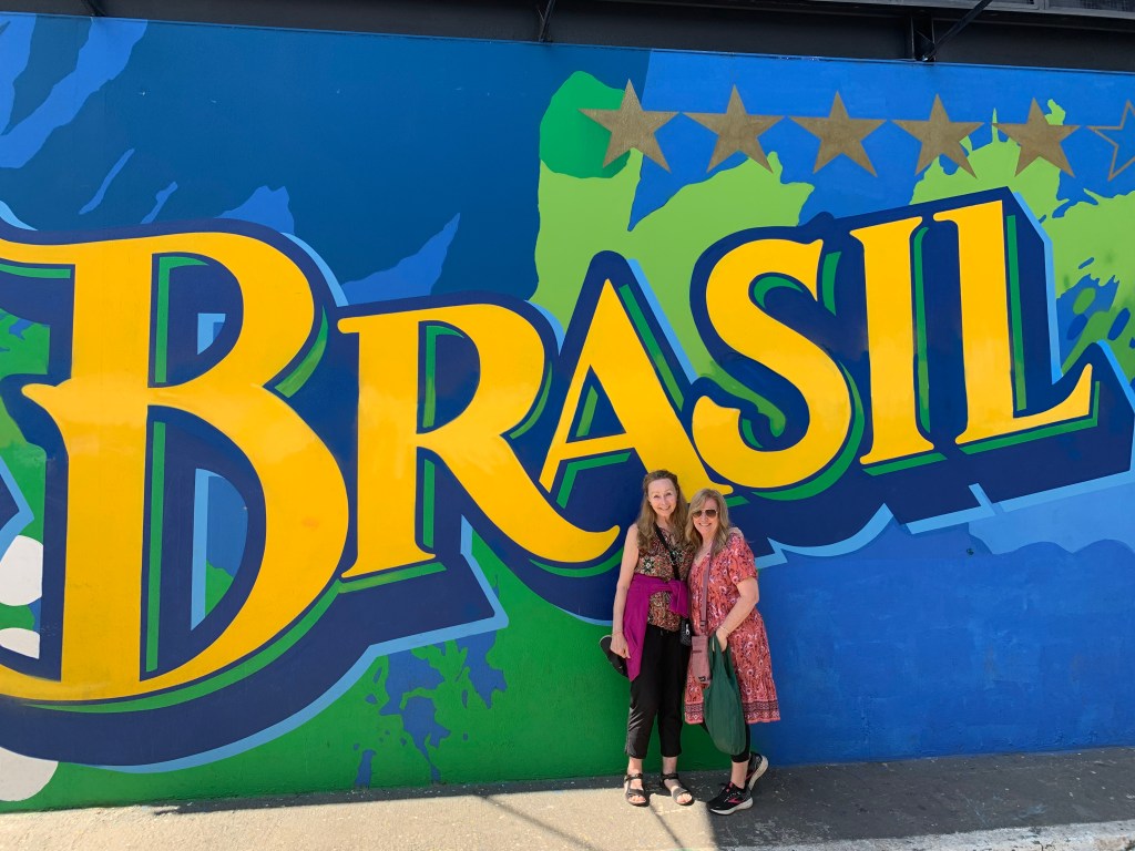 We thought we could get back on track if we took the next left, unfortunately we were definitely out of our element. We asked directions from the locals, in which, they only spoke fast Portuguese to us. We knew that we were left to our own initiative. After many twists and turns, we came upon a police station. We enthusiastically ran up the steps to find 2 nice police officers that also didn’t speak English, but they were eager to help. We showed them on our phone the destination we planned to go. They showed us on their phone how to go. We definitely thought we could do this. One of the police officers walked us out and the only English parting word to us was DANGEROUS! He pointed to our phone and showed us to keep the phone hidden. Yikes, now we had to memorize the directions. The São Paulo bad guys love to steal phones by riding by on their bikes and snatching the phone out of your hand. It happens so fast. You can’t even react. Thank goodness Marianne has a good memory. We were doing just fine until we reached the church. We couldn’t remember whether to take a left or right. Of course we took the wrong way.