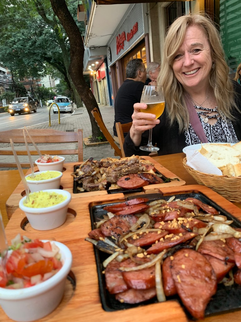 1 Mixed Meat Platter with onions and 1 Pork Sausage Platter with onions. We had enough food for an army. It was sooo delicious. We took the extra platter back to the hotel and ate it the next day on the plane. Lesson learned…we need to learn Portuguese .