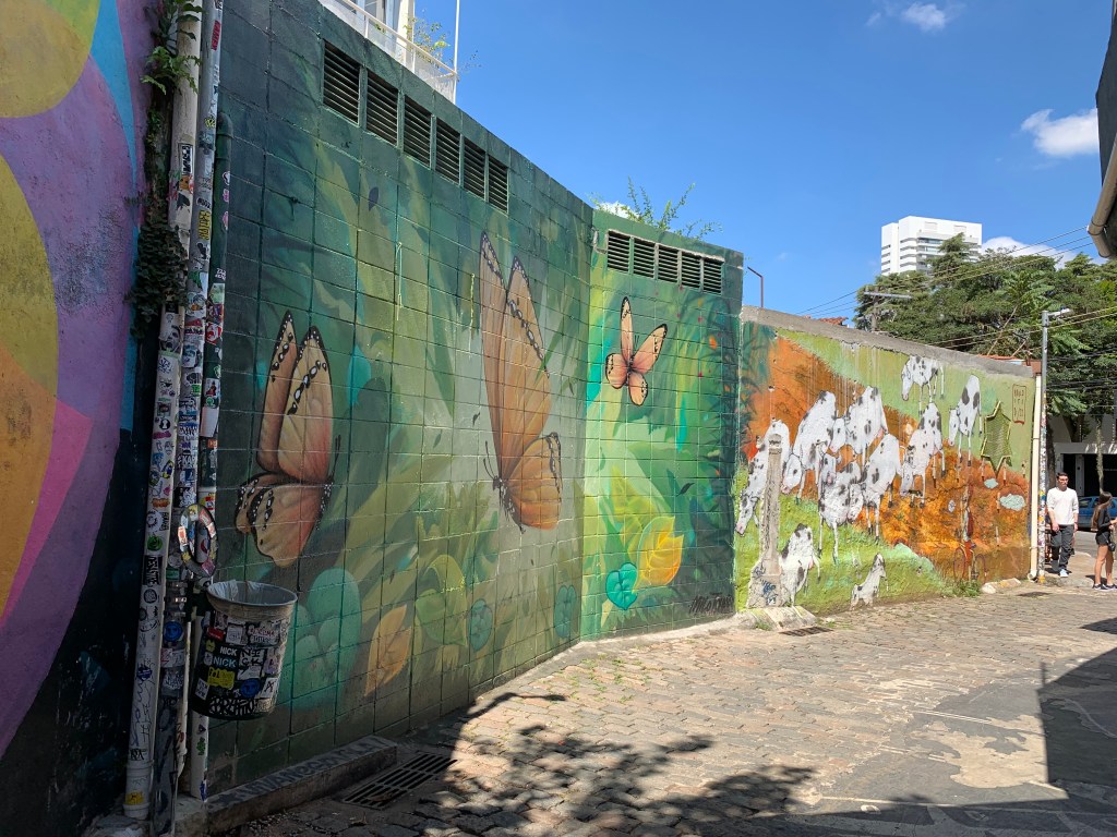 Beco do Batman is an area near Vila Magdalena in São Paulo where 3 alleys meet. Every inch of wall at the dense urban crossroads is covered with graffiti and the pieces even extend down onto the sidewalks. Well known street artists from not only Brazil but all over the world are attracted to this sanctuary of graffiti and come to make their marks. The street art started in the 80s when the first drawing of superhero Batman was drawn. The art was amazing!