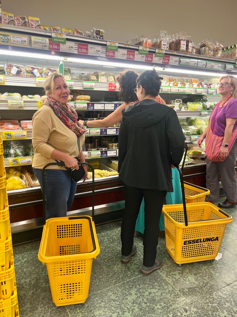First stop after our nap, was to the local grocery store. I am no foodie, but these girls know their stuff. A few of the items that they bring back home are dry pasta, olive oil and cheese. After a successful shopping experience, we headed back to the hotel to have a debrief. (A debrief in Flight Attendant jargon means we go to one of our rooms and have a beverage of some sort and snacks to discuss our next plan of action.)
